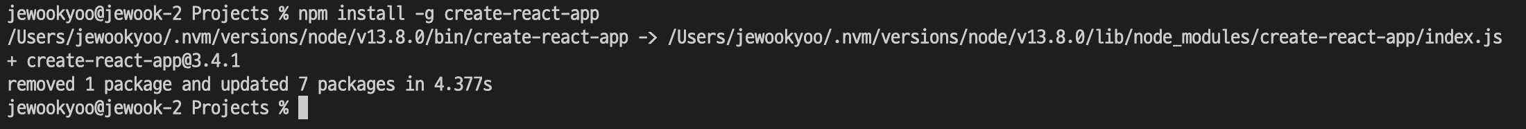 - npm에서 create-react-app을 global로 설치하고 실행하기