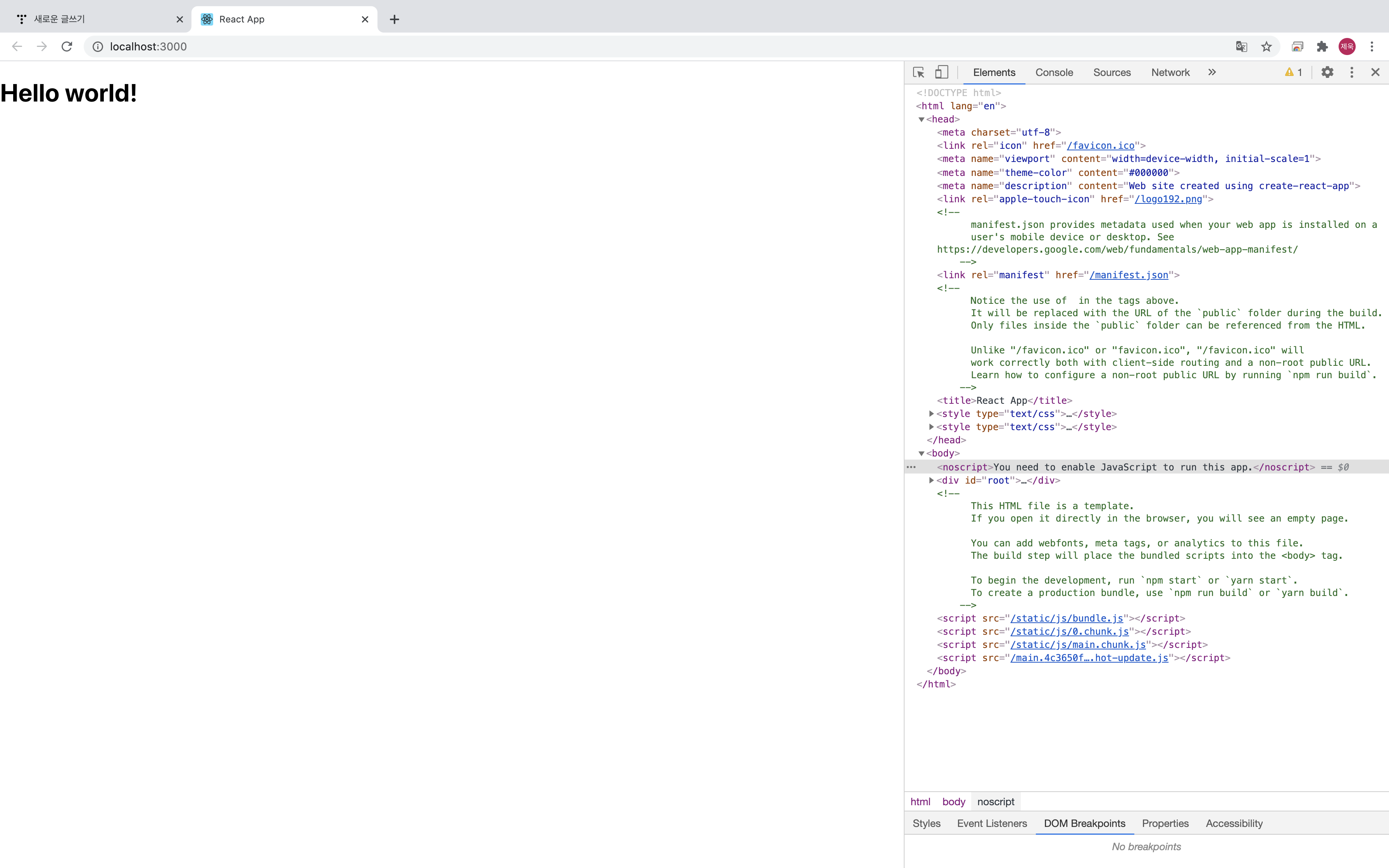 이번 글에서 눈 여겨 볼 것은 public/index.html 과 src/index.js 입니다.