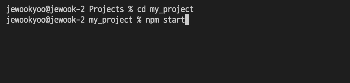 npx 명령어를 사용하면 create-react-app를 설치하지 않고 바로 실행할 수 있습니다. npx는 npm 버전이 5.2.0 이상이라면 사용가능한 명령어입니다. create-react-app이 설치되어있지 않은 상태에서 다음과 같은 명령어를 입력해도 똑같이 my_project 폴더가 만들어집니다.