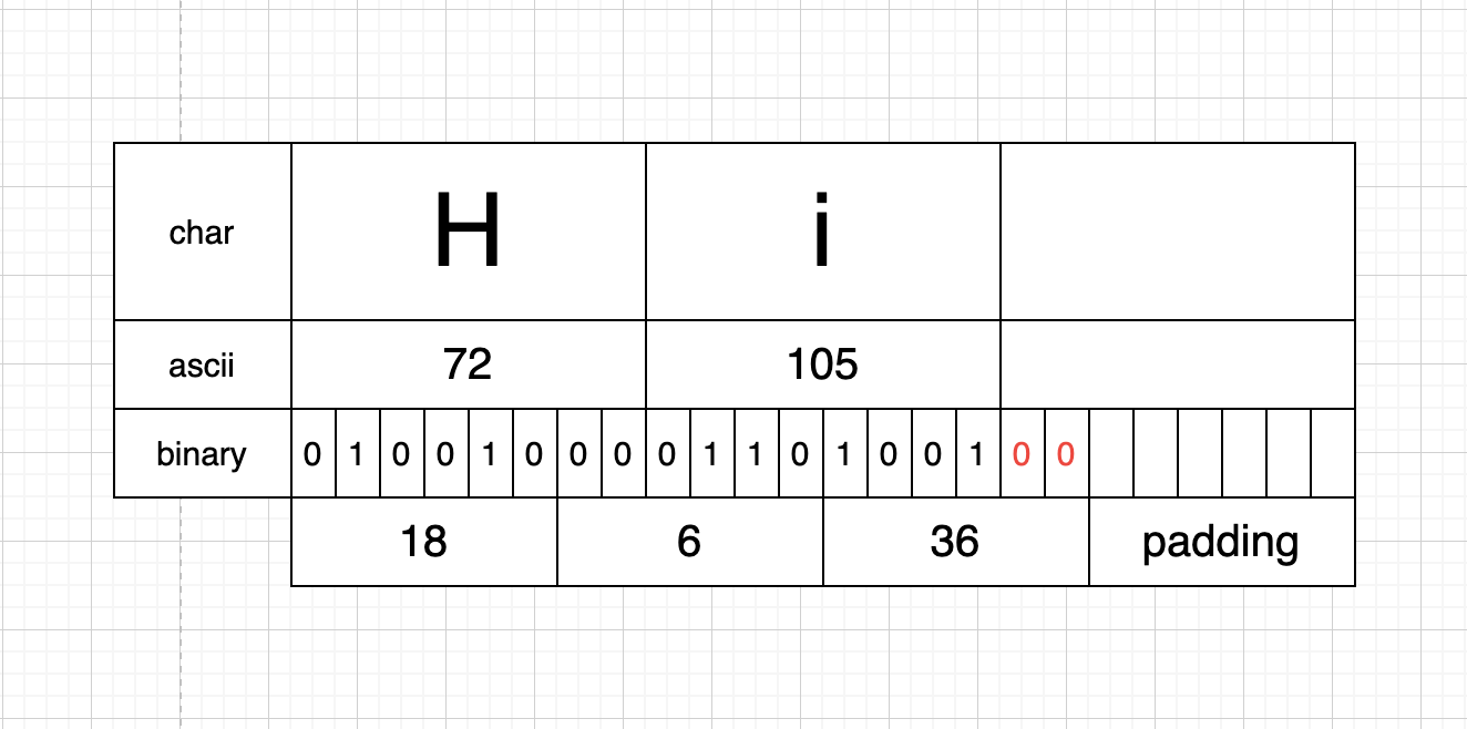 base64 인코딩은 3글자씩 잘라서 인코딩 하기 때문에 글자수가 3으로 나눠 떨어지지 않으면 padding 값을 집어 넣어줍니다. 6비트씩 잘랐을 때 부족한 비트는 0으로 채워줍니다.