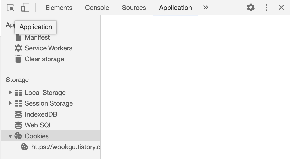 크롬 개발자도구 > Application 탭 > Cookies 에서 현재 접속한 사이트에서 사용되는 쿠키 정보를 볼 수 있습니다.