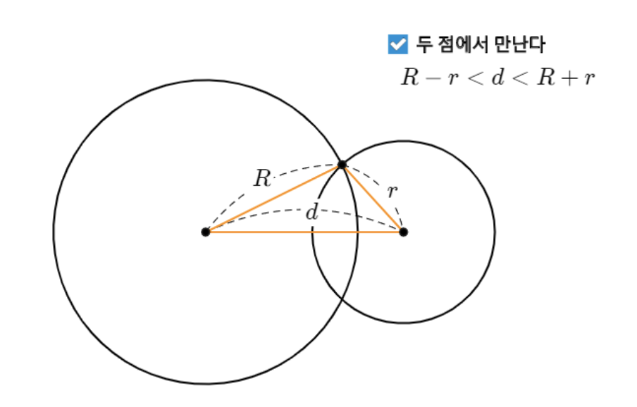 위 경우를 코드로 나타내면 distance > rsum || distance < rsub 입니다.
